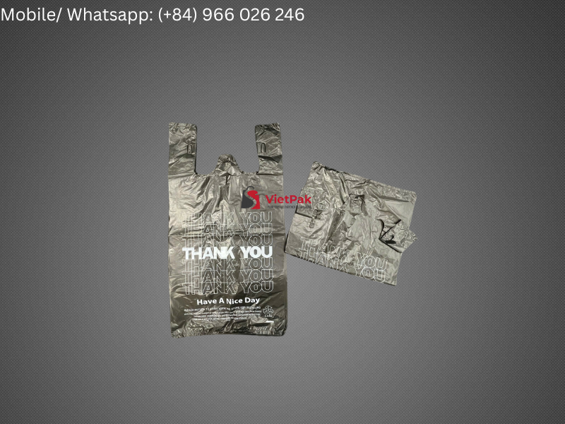 As a leading T-shirt plastic bag manufacturer in Vietnam, Vietpak provides custom packaging solutions for global retailers and food businesses. We offer fast production, export-ready packing, and private labeling. Our black “Thank You” bags are stylish, durable, and designed for both function and branding.